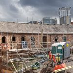 The Roundhouse under renovation with building works in progress.