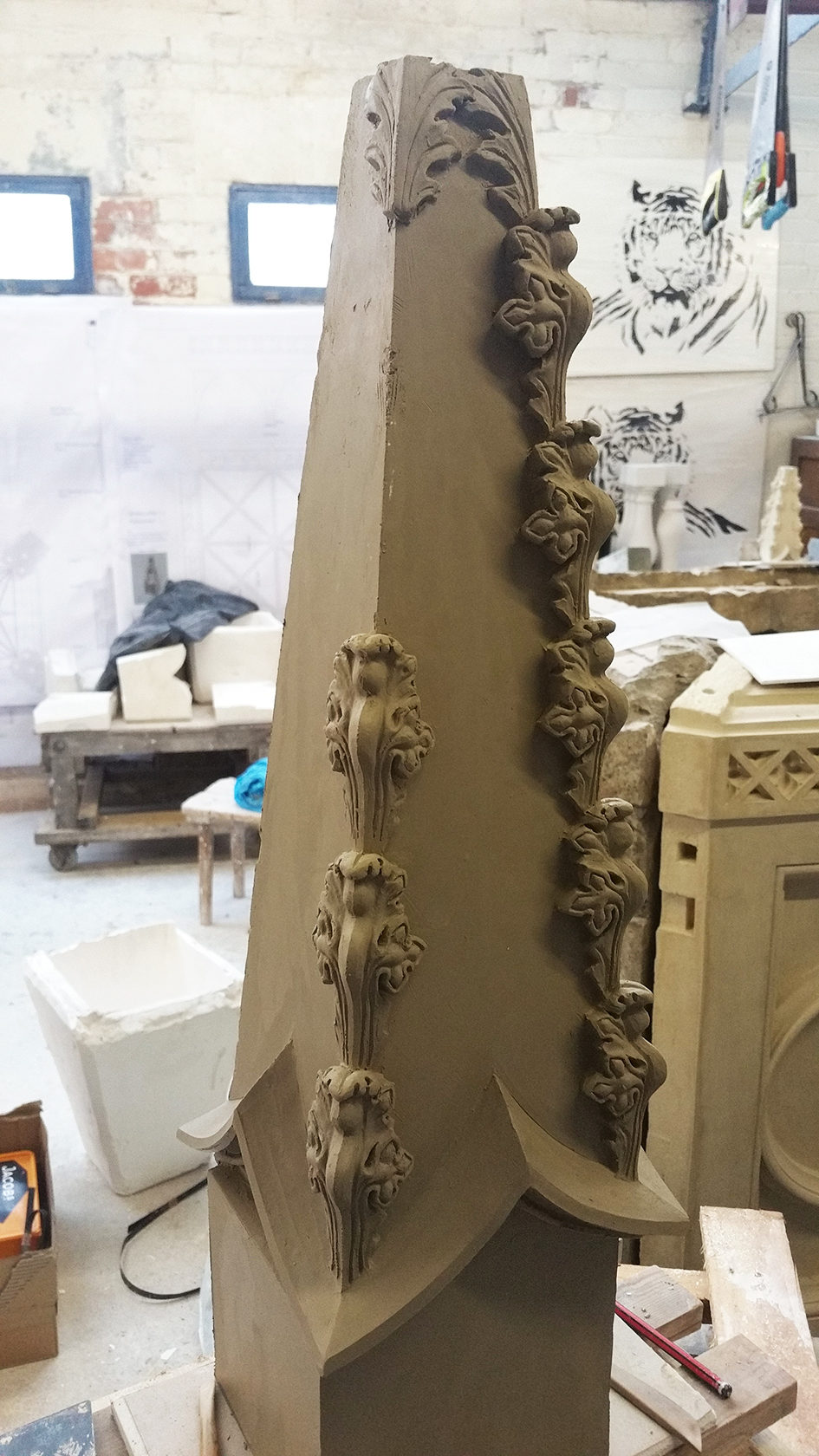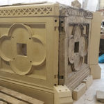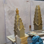 “We are combing craft with modern science and technologies,” says Nicholas Barnfield, Architectural stone and sculpture conservator, Cliveden Conservation. “Fragments of the cross have been scanned and inserted into 3D CAD drawings. By forensically using those fragments, together with only one drawn reproduction, we have successfully managed to recreate the Gothic Cross as an image. As a result of these drawings, we can model and recreate the plaster patterns to produce the moulds which are then fired in a kiln to produce the Coade stone.”