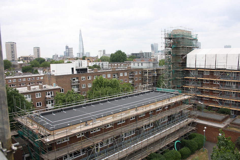 In addition, with a large element of the works being undertaken to the external part of the estate, Keepmoat also worked collaboratively with Southwark Council to develop the idea of installing temporary roofing to ensure the pitched to flat roof conversions could continue in times of adverse weather. Only needing to stop occasionally in times of very strong wind or heavy rain, works continued, ensuring the project remained on scheduled.