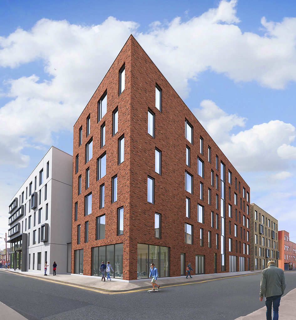 The scheme comprises three residential buildings of between three and six storeys, with 207 high-specification en-suite beds arranged in cluster apartments of between five to eight bedrooms. The development will also feature significant dedicated communal areas, including a common room, gym, study room, bicycle storage, a public coffee shop at ground level and a private outdoor landscaped courtyard.