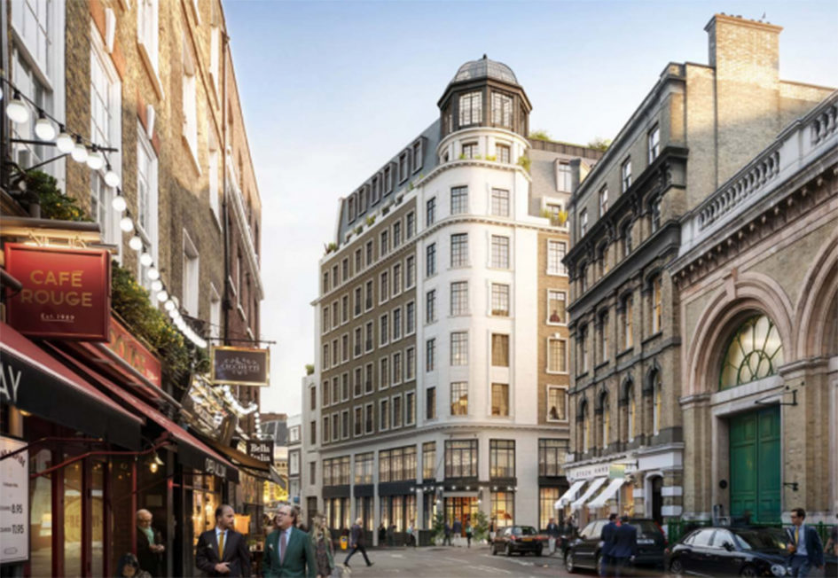 The new Wellington Hotel, located near the London Transport Museum, will include spa facilities, two restaurants, and a members’ club, built around a central courtyard conservatory.