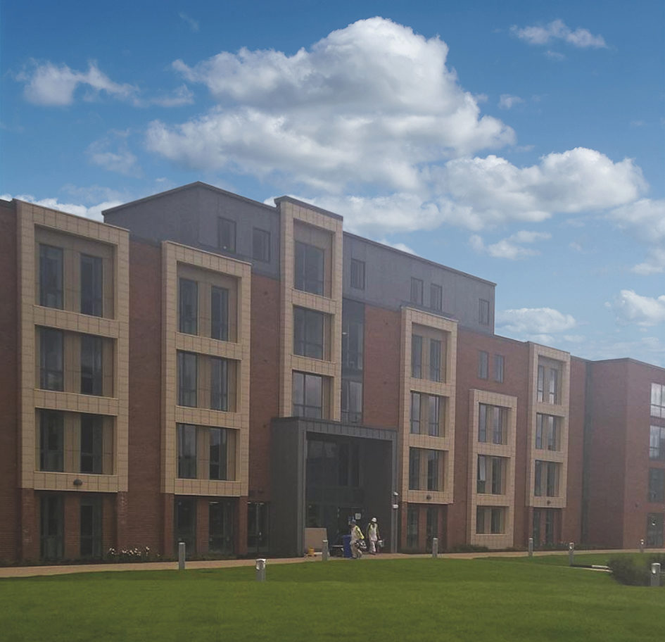 Developed by Alumno Developments, Sheraton Park is the result of a complete transformation of a former derelict college site, which has seen the existing Sheraton House, a neo-Georgian building, demolished and Neville House, a red brick building from the 1900’s, converted to create two new contemporary five-storey blocks. Accommodating a total of 418 individual student bedrooms across the two new buildings, the project also delivered a reception, communal rooms, management facilities and laundry services.