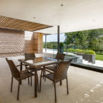 Owing to its strong agricultural feel, zinc has been installed on the north elevation of the original property, extending over the roof to provide shade to the south. The remaining facades are clad in Kebony wood to ensure the exterior of the extension works in conjunction with that of the house. The timber cladding acts as a rustic material, which when exposed to the elements, gradually develops a silver-grey patina to blend seamlessly into the remarkable surroundings of the National Park.
