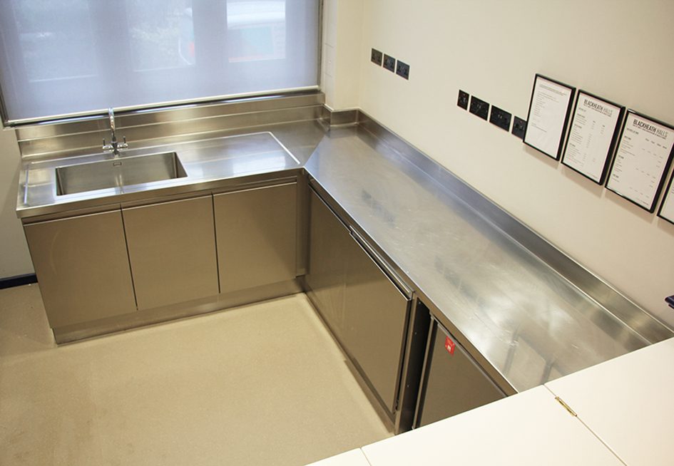 While many clients choose to make use of G.E.C Anderson’s standard ranges of sinks and other sanitaryware, the conservation considerations to the work within Blackheath Halls required a bespoke solution. The sector specialist manufacturer’s workshops duly produced a set of three base cabinets in stainless steel, and a single-piece L-shaped stainless steel work-surface with integral sink and splashbacks. Such custom made installations offer a pristine appearance that is ideal for such public facing applications, while helping establishments maintain an efficient cleaning regime essential in achieving the high standards of hygiene essential in commercial premises.