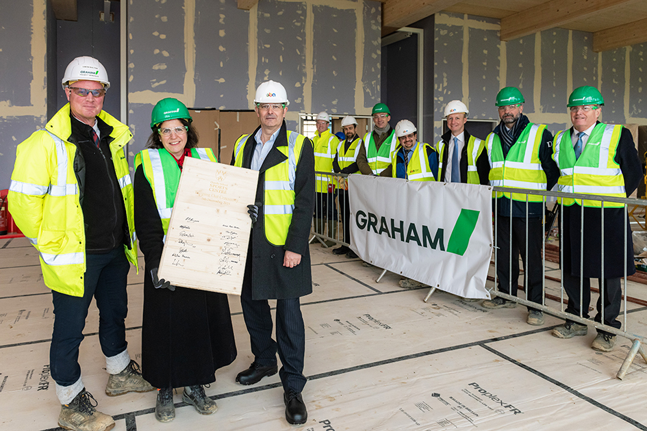 GRAHAM has marked a major milestone in the construction of a new Sports Centre at Oundle School with a topping out ceremony. The event gathered representatives from the privately-owned contractor and Oundle School to celebrate the progress of the £24m project.