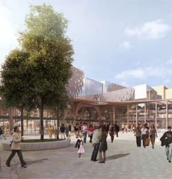 The hotel would replace the Crowne Plaza Hotel, which together with the Forum shopping centre and several other buildings on the site would be demolished in 2019 to begin on the second phase.