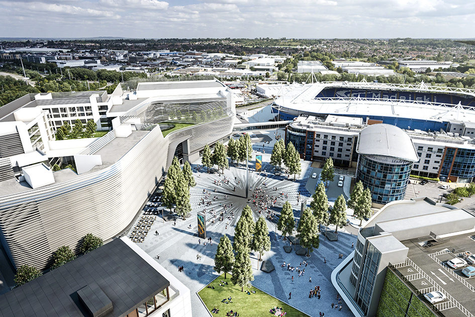 The scheme also includes more than 18,000sq m of new public open space. A new public square of 8,000sq m will form a focal point for residents, football supporters and visitors, and will include over 2,000sq m of new retail, leisure and restaurant facilities.