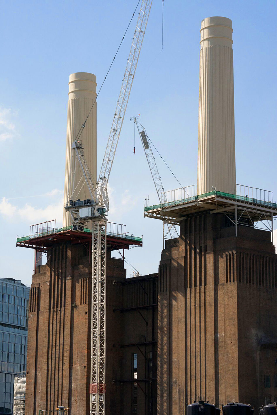 All four of Battersea Power Station’s chimneys had to be painstakingly dismantled and rebuilt, following completion of detailed surveys, very close consultation and engagement with Historic England and the London Borough of Wandsworth.