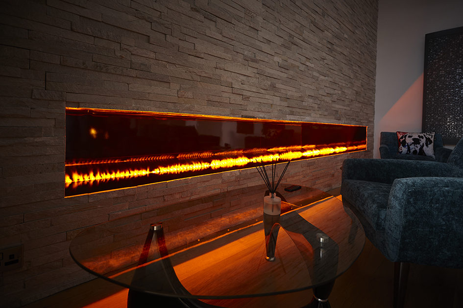 Flame technology installations are more flexible than real fires as they do not require ventilation in terms of chimneys or flues, which makes them easy to install and less costly. Additionally, they can be installed at any stage during the building design and construction process, which makes them especially powerful in refurbishment projects.