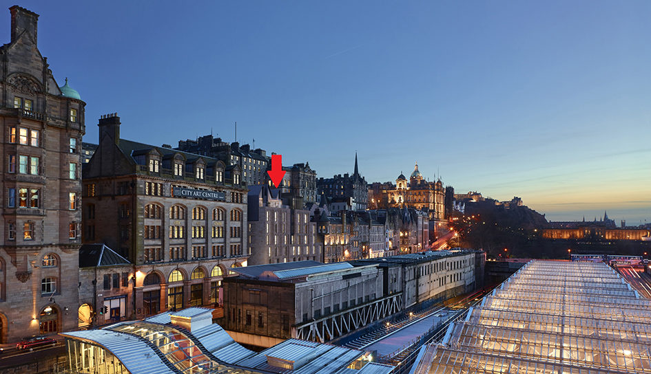 Visualisation of how the new 98 room boutique hotel in Edinburgh’s Market Street blends seamlessly with the city’s existing streetscape