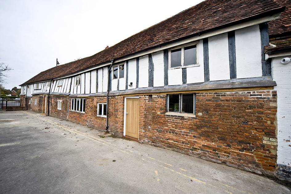 The 160 sq m (525 sq ft), single-storey building sits at the perimeter of the school site and had been unoccupied for decades. It is a timber, Tudor-style construction dating back to the 16th Century with uneven dimensions, angled windows and sloping doorframes – and listing requirements mean that refurbishment works cannot touch or damage any part of the frame.