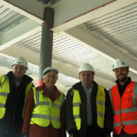 New Image management, Mayor Ros Jones and Willmott Dixon’s Building Manager Rob Bratherton underneath the steel beams that New Image have delivered.