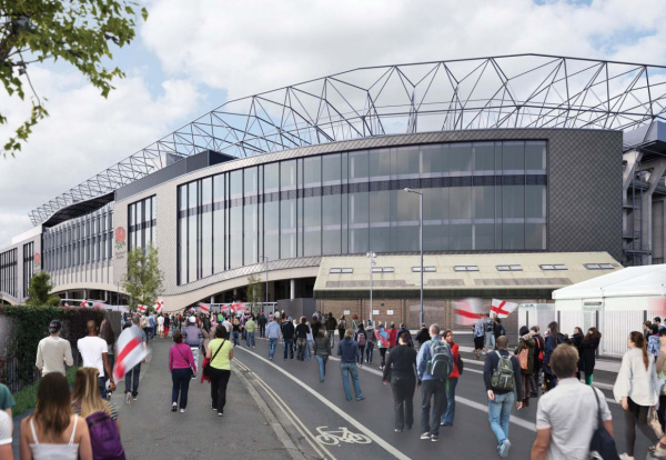 Designed by Mott MacDonald, the redevelopment plan will double the available space on the east stand to around 220,000 sq ft but not affect the existing bowl infrastructure and seating.