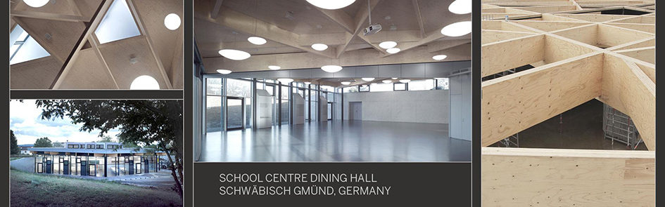 Designed to blend into the surrounding scenery, a unique roof construction of the new dining hall is the centrepiece of the regional college in Schwäbisch Gmünd. Visitors see a suspended roof, which is perfectly integrated into the landscape. The unusual roof construction was designed by German Liebel/Architekten and it was constructed using Metsä Wood’s Kerto® LVL products.