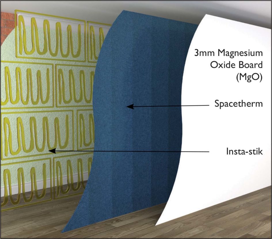 Spacetherm WL (Wall Liner) is a high-performance laminate specifi cally designed to be fi xed to the internal surfaces of existing solid walls without the need for mechanical fi xings. Spacetherm WL consists of 10mm Spacetherm aerogel insulation blanket bonded to 3mm Magnesium Oxide Board (MgO), for use in applications where improved therma performance is required with limited space.