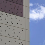 Proteus also addressed the aim of establishing a seamless link between its perforated panels on the stack and the 12m high LED screen. This was done by working with the architects, screen suppliers and façade installers, Deane Roofing and Cladding, to create a bespoke tray system allowing the screen to be recessed and the perforated panels butted up flush with the edges.