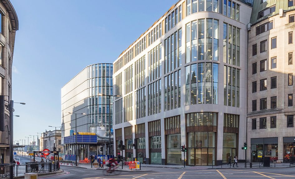 24 King William Street in London has achieved something that all refurbishments strive for but few achieve; creating a brand new building from the bones of an existing one and with minimal demolition. The design for this prominent site reuses the existing structural frame, with the end result being a building that is both elegant and refined. Outwardly, the solid and perforated brass, zinc and aluminium cladding panels, architectural fins and a wrap-around zinc roof come together to form an inspirational landmark at the Gateway to the City.