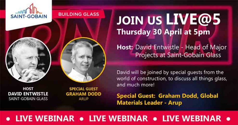 Saint-Gobain Glass head of major projects, David Entwistle, will be joined by a different Saint-Gobain technical expert every week to answer any building glass questions for the glass surgeries, while the more informal ‘Live@5’ interviews will feature special guests from the world of construction.