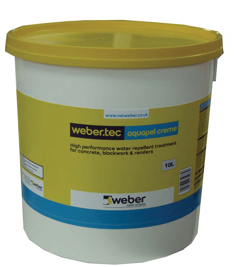 Easy to apply by brush, roller or non-atomising spray, weber.tec aquapel crème requires a one-coat application and can be applied overhead without loss of material and leaves minimal surface appearance. It protects against ingress of chlorides and sulphates; improves freeze/thaw resistance while reducing corrosion, and effectively allows the treated surface to breathe.