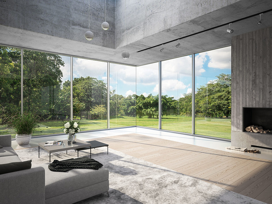 A particularly attractive feature is the frameless glass-to-glass corner option that eliminates the need for an intrusive corner profile by transferring the glass load directly onto the adjacent mullions. The result is wider unobstructed views from the inside and a sleek contemporary look from the outside.