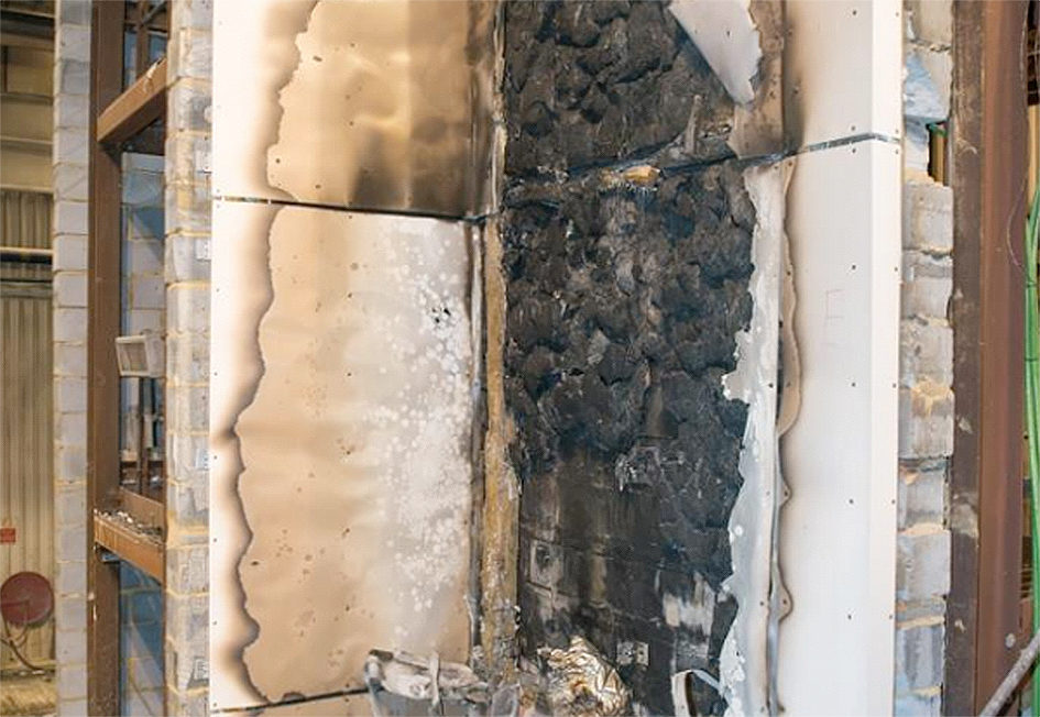 The Government’s testing body is carrying out a total of six tests incorporating each of the three common types of aluminium cladding material panel, using either core filler materials of unmodified polyethylene (PE), fire retardant polyethylene, or limited combustibility mineral.