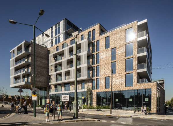 Queen’s Park Place is part of the London Borough of Brent’s plan to deliver 2400 new homes in South Kilburn by 2025. It includes 28 affordable units as well as 116 apartments for private sale, a 465sq m food store let by Marks & Spencer and basement parking.