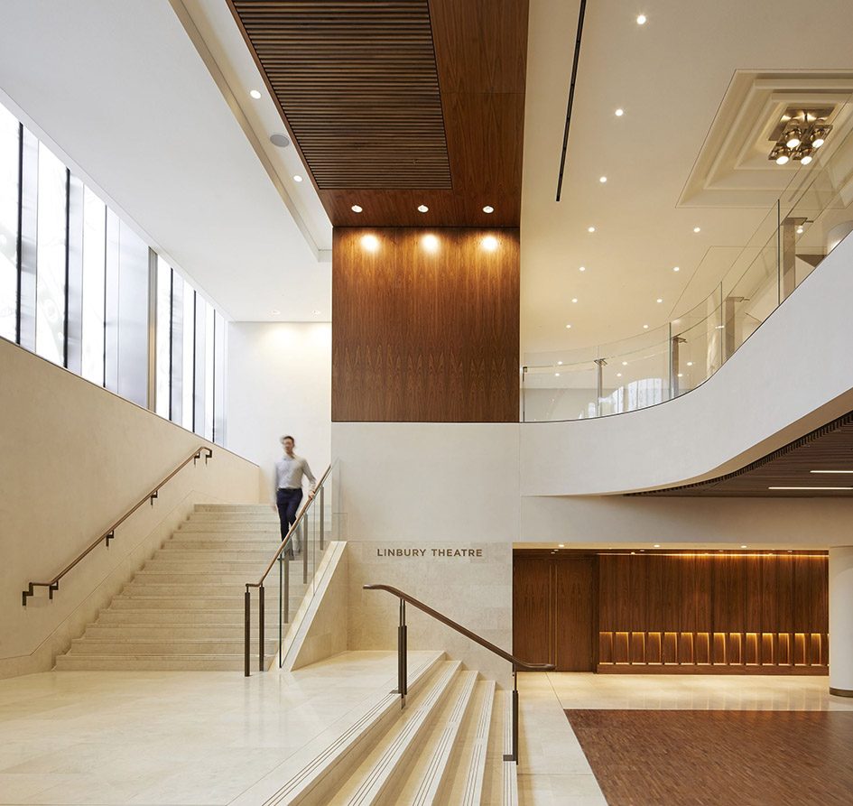 “The acoustic work was part of a wider project to open up and reconfigure the main foyer areas,” comments Tom Shell from project architects Stanton Williams. “In the newly-created large, open spaces we chose to use natural materials such as stone for the flooring. Although aesthetically pleasing, this added to the acoustic challenges as it is a hard, reflective material. This meant that coping with noises such as foot traffic was a concern, and it created the need for a solution which would also accommodate other reflective materials, such as the Venetian polished plaster used on the walls.”