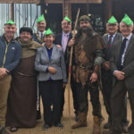 From LtoR: Mike Dilger, Phil Rose, Cllr Kevin Rostance, Cllr Kay Cutts (Leader of Notts CC), Robin Hood and other County Council representatives