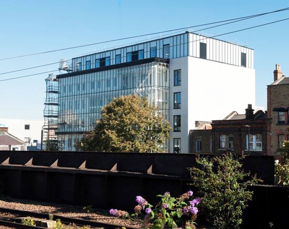 This sustainable 6-storey commercial property in Bethnal Green is a retrofit of a disused and derelict 1960s office block with a modern and flexible workspace for up to fifty social change organisations. The existing concrete frame was maintained to minimise waste, pollution and reduce carbon emissions that occur through demolition. A new 6 storey rear extension and atrium was added to the back to create 7050m2 of office space.