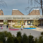 The 100-place nursery is arranged around three sides of a landscaped courtyard. On the fourth side, is the civic scaled community centre including a 180-seat main hall. The